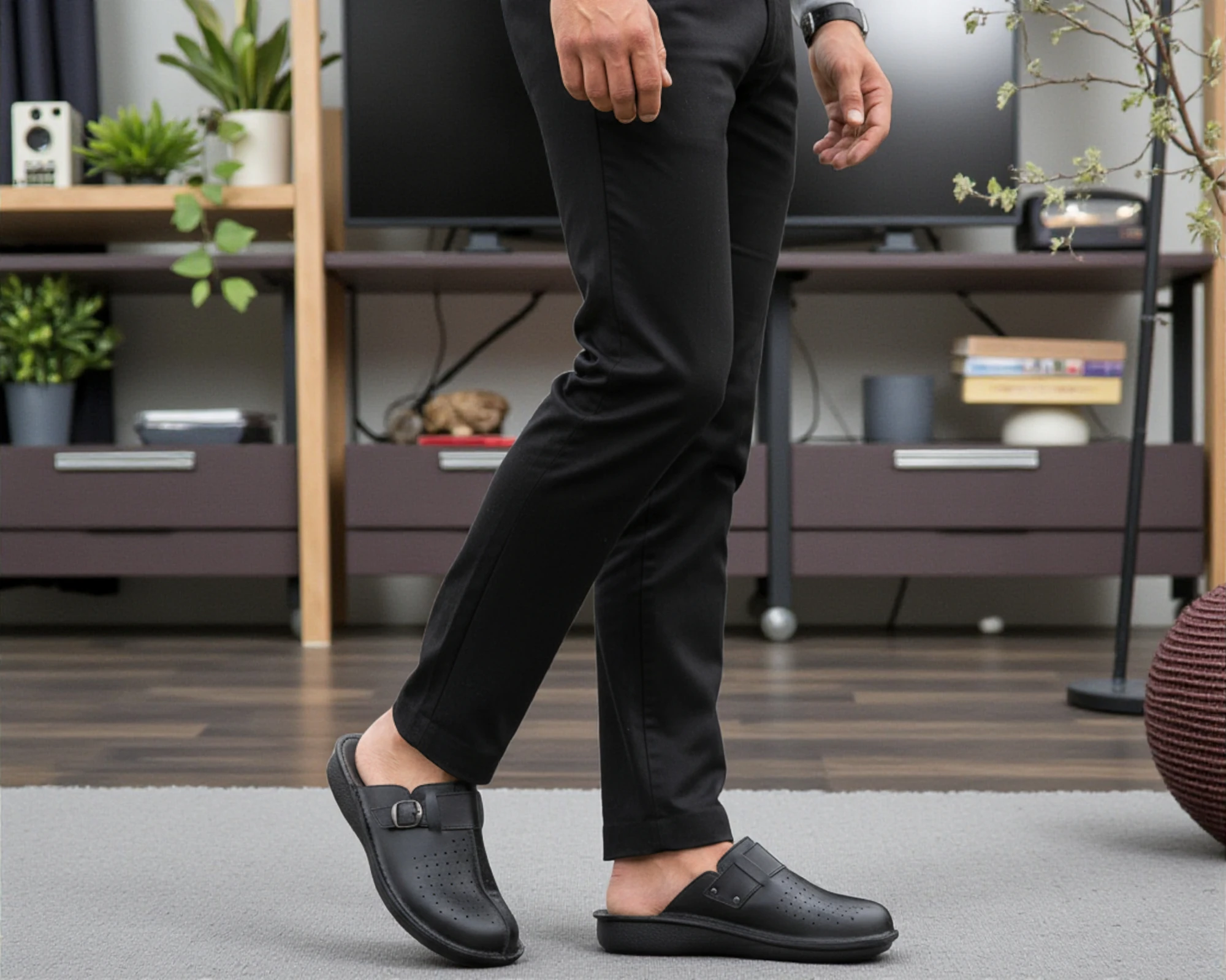 Kožne anatomske natikače, crna